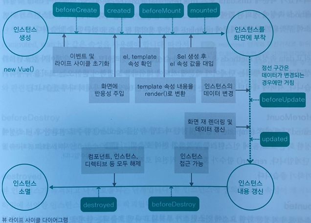 - 라이프 사이클 속성에는 created, beforeCreate, beforeMount, mounted 등